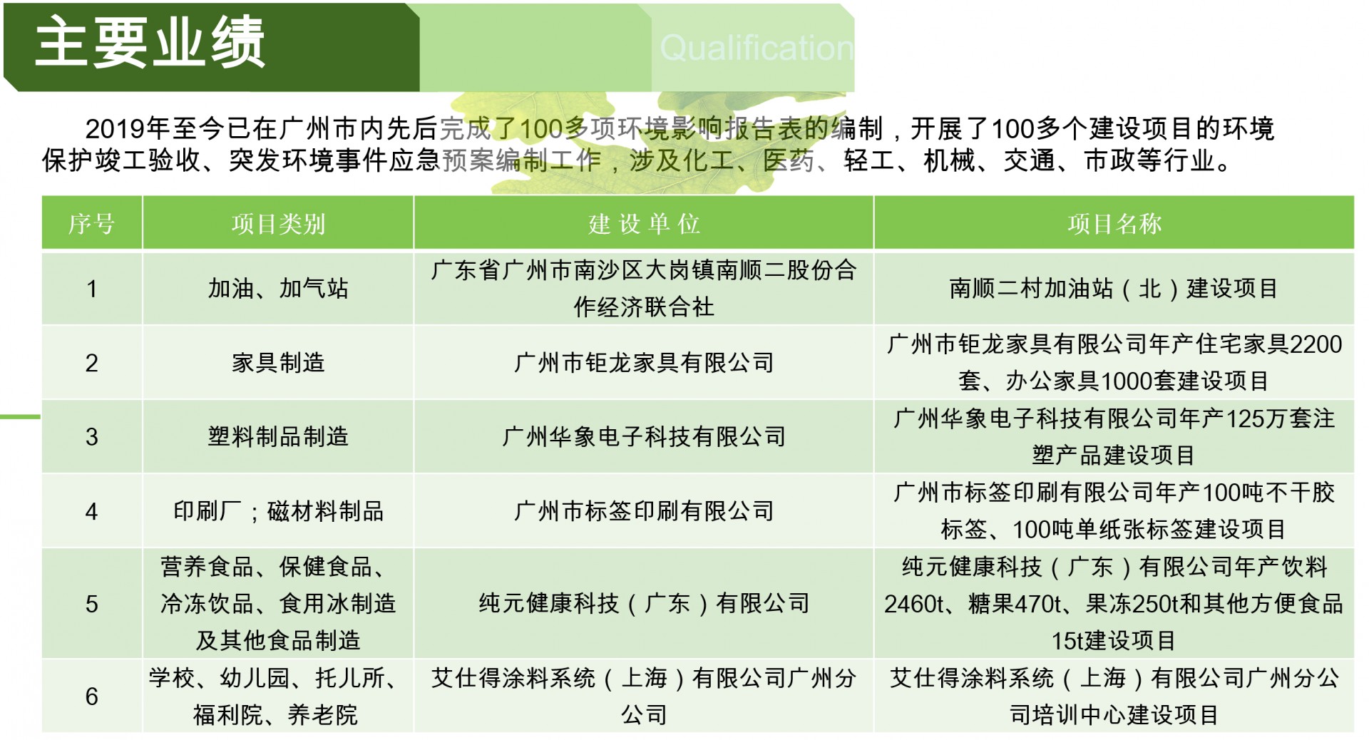 廣州市中揚(yáng)環(huán)保工程有限公司成立于2015年,專注于項(xiàng)目環(huán)評、生態(tài)調(diào)查、規(guī)劃環(huán)評、場地調(diào)查、項(xiàng)目竣工環(huán)保驗(yàn)收、突發(fā)環(huán)境事件應(yīng)急預(yù)案及風(fēng)險(xiǎn)評估、排污許可證申報(bào)、生態(tài)調(diào)查報(bào)告、環(huán)境監(jiān)理、環(huán)境監(jiān)測、水土保持方案編制、水土保持監(jiān)測與驗(yàn)收、環(huán)保技術(shù)顧問及環(huán)保管家服務(wù);廢氣、廢水治理工程;廢水處理站運(yùn)營管養(yǎng)服務(wù)。